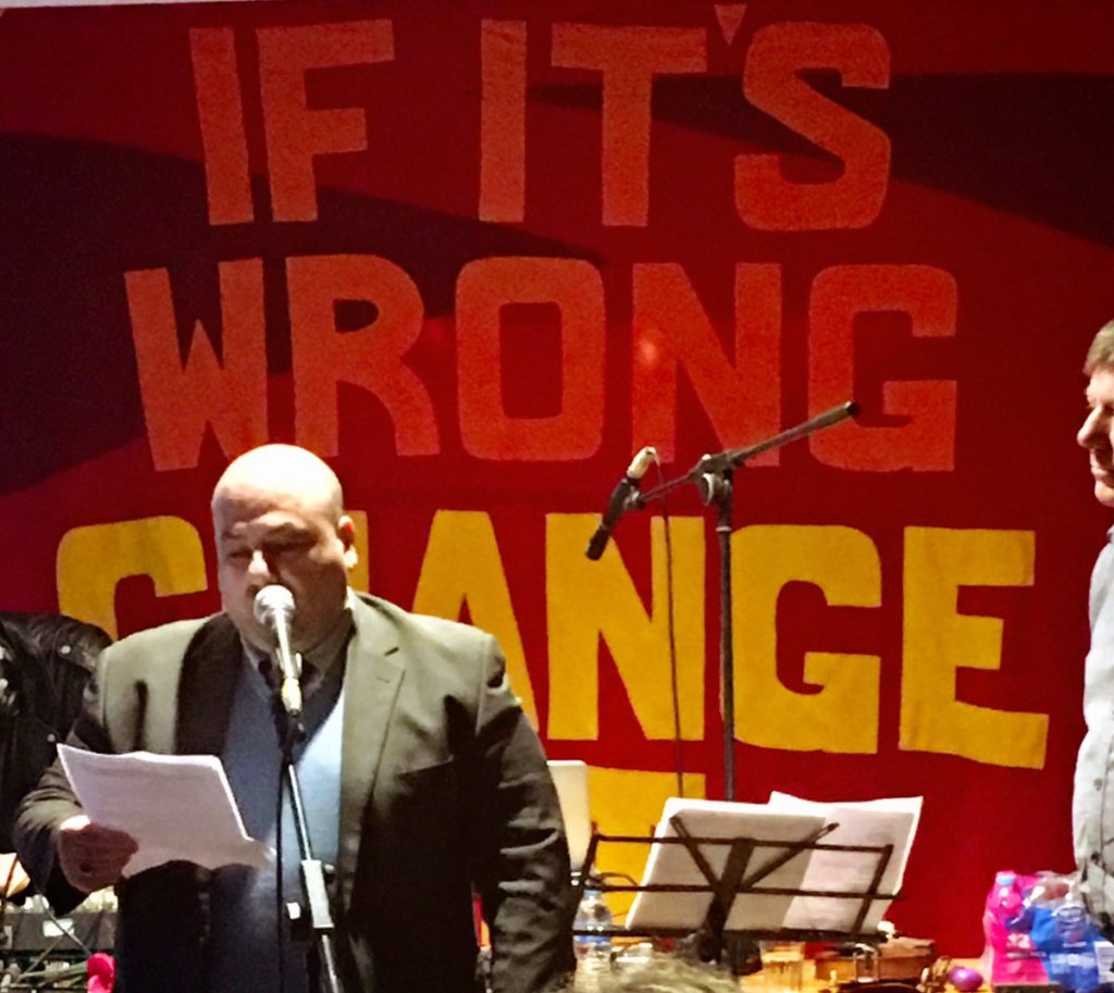 On the 21st of September 250 people came to Creating Change Colchester’s Variety Night of local talent and politics ‘If It’s Wrong Change It’. The night was a medley of speakers, performances, poets and bands – and it attracted a large diverse audience. There was a brilliant story from Clare Marsh about her journey to the ‘If It’s Wrong, Change It’ slogan from which the event got its name. Her amazing banners decorated Colchester Art Centre on the night. This was followed by a fantastic thought-provoking talk from Hasina on why she wears the hijab and a powerful and moving address from Solma Ahmed on anti-Islamophobia and anti-racism. Then we heard a poem entitled ‘If It’s Wrong, Change It’ by Mike Harwood and witnessed a death-defying nail stunt from the Great Antonio. The night then turned up the volume with sets from Lo-Fi Lighthouse Jam, punk Battle of Bands winners Feedback, Grunge Punk band Tundra and an explosive live performance of fractured anthems from headliners Pet Needs. Whilst this was all going on the perimeters of the Arts Centre were filled with stalls from local campaigns and groups: Refugee Action, Beacon House, Unite, Vent Your Rent and Speaking Outside the Box. In the foyer guests were welcomed by Creating Change Colchester to start the political conversation of the night. Guests were encouraged to interact with a board asking ‘what’s wrong?’ and ‘how should we change it?’ and hungry audience members, campaigners, activists, gig goers and families ate delicious food from the Falafel & More food van outside. The great turnout raised £400 split between Beacon House and Refugee Action. The night was a rip roaring success, the air full of energy and hope and a real credit to, and celebration of, the local community here in Colchester and the surrounding areas.