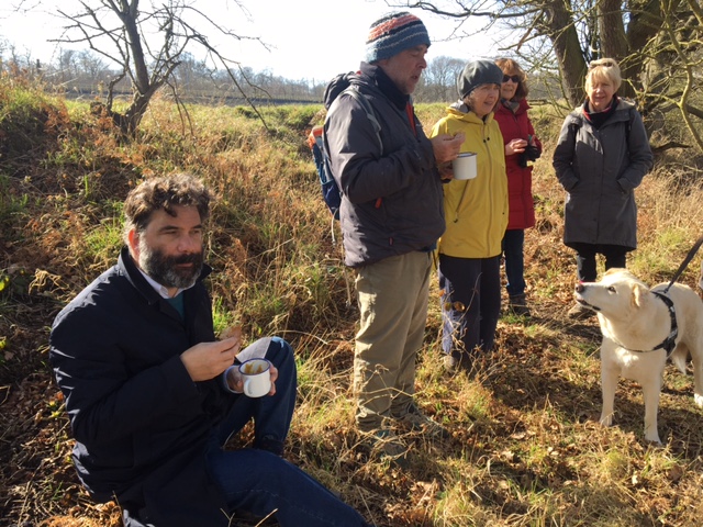 A fantastic day for a walk in Copperas Wood with the reward of cold soup at the end (we did try to heat up the ‘orange’ soup (ie. all orange/red vegetables) but it was too windy to keep the flame alight on the stove! About 16 people joined Dan for his ‘Ramble through the Bramble’. We are looking forward to the next walk at the end of April – more details to follow.